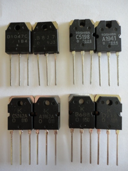 ราคาขาย 2SD1047 และ 2SB817 ตัวละ 35 บาท 2SC5198 และ 2SA1941 ตัวละ 45 บาท KTC5242 และ KTA1962 ตัวละ 45 บาท KTB688 และ KTD718 ตัวละ 30 บาท นอกจากนี้ ยังมีอะไหล่อิเล็กทรอนิกส์อื่นๆ จำหน่ายอีกมากมาย อาทิเช่น ตัวต้านทาน ตัวเก็บประจุ Mosfet IC Transistorไดโอด Trimpot สนใจสอบถามข้อมูล ติดต่อ คุณไพรัช ร้าน พี.เอ.อินเทค โทร : 08-5687-9900 E-mail : [email protected]