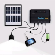 SUNBOX USB อุปกรณ์ผลิตกระแสไฟฟ้าพลังงานแสงอาทิตย์(Sunbox) ระบบแบตเตอรี่สำรองไฟและไฟส่องสว่างพลังงานแสงอาทิตย์ - แผงโซล่าร์เซลล์กันน้ำพร้อมสายเคเบิล - ระบบแบตเตอรี่ภายในสำหรับระบบเก็บพลังงานแสงอาทิตย์ - สามารถชาร์จแบตเตอรี่โทรศัพท์มือถือ แบตเตอรี่ และไฟส่องสว่าง - มาพร้อมกลับหลอดไฟ LED เสียบ USB และสายชาร์จโทรศัพท์มือถือพร้อมหัวแปลงทุกรุ่น คุณสมบัติเด่น - ชาร์จเต็มที่ 6-8 ชั่วโมง - มี USB พร้อมในการใช้งาน - มีระบบตัดไฟเมื่อมีการใช้ไฟเกิน - พกพาสะดวกหรือแขวนติดผนัง - มาพร้อมแผงโซล่าร์เซลล์กันน้ำ ประโยชน์ใช้สอย - ที่ชาร์จพลังงานแบบพกพา - สามารถชาร์จแบตเตอรี่โทรศัพท์มือถือได้ - ต่อเข้ากับสาย USB เพื่อเสียบไฟส่องสว่าง - เหมาะกับการแคมป์ปิ้งและท่องเที่ยว - เป็นที่สำรองไฟฉุกเฉินยามเกิดภัยธรรมชาติ - ใช้ในพื้นที่ชนบทที่ไฟฟ้าเข้าไม่ถึง อุปกรณ์ที่สามารถชาร์จได้ - โทรศัพท์มือถือทั่วไป