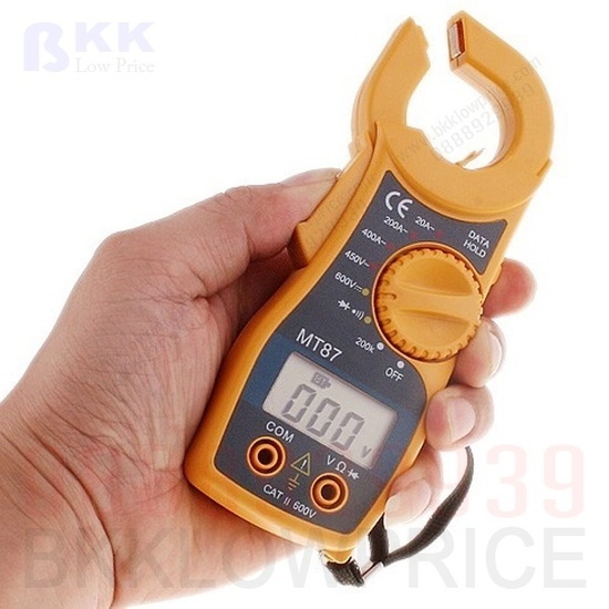 Digital clamp meter เครื่องมือวัดไฟฟ้ากระแสสูงมากเป็นพิเศษ แบบห่วงคล้องกับสายไฟฟ้า อ่านค่าด้วยระบบดิจิตอล ที่ให้ค่าการวัดที่ถูกต้องแม่นยำ มีความปลอดภัยสูงเพราะไม่ได้สัมผัสตัวนำไฟฟ้าเลย จึงสะดวกคล่องตัวในการใช้งาน นอกจากนี้ยังสามารถวัดทดสอบทางไฟฟ้าขั้นพื้นฐานทั่วไป ได้แก่ วัดแรงดันไฟกระแสสลับ แรงดันไฟตรง กระแสไฟสลับ ความต้านทาน ไดโอด ความต่อเนื่อง เป็นต้น เป็นต้น ตัวเครื่องมีสายโพรบวัดทดสอบ และแบตเตอรี่แถมมาให้ด้วย 2 ก้อน