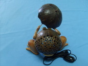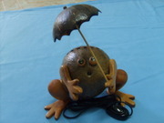 โคมไฟเป็นรูปกบทำมาจากกะลา มีหลอดไฟแสงสีสม มีสวิทซ์ปิดเปิด น้ำหนัก 500 กรัม น้ำหนัก : 500 กรัม ขนาด [กว้าง x ยาว x สูง] : 16 x 12 x 25 ซม.