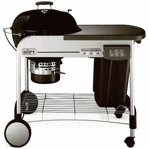 Weber Performer charcoal grill has a gas Touch-N-Go ignition system that ignites charcoal grill with just one touch. organizational features help you focus on your food, including a desk assistant, a coal storage bin protected by air, ground grid, and three utility hooks. This grill is built to last, as by the heavy steel construction of the trolley, heavy galvanized steel hinged cooking grate, without air, alumina demonstrated fiberglass reinforced nylon with handles, two crash tests, wheel of time and two rollers. Your One-Touch cleaning system with a map of Black Ash Catcher aluminum for easy cleaning. Available in black, green and blue.