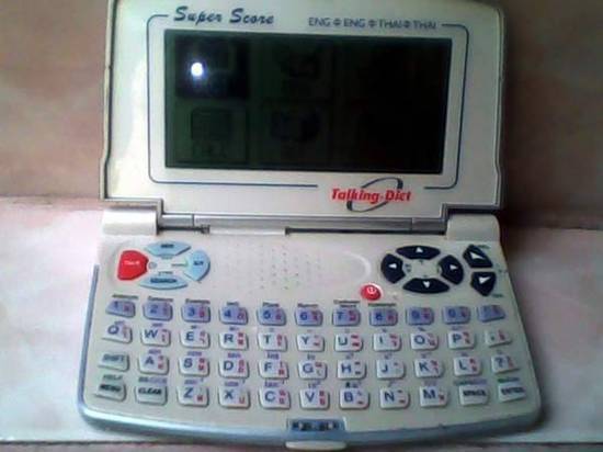 ดิกชันนารีพูดได้ SUPER SCORE ENGLISH#THAI เล็กกระทัดรัด พกพาสะดวก ฟั่งชั่นเพียบ เช่นพจนานุกรม บทสนทนา คำนวน เวลา ปฎิทิน ฯลฯ สภาพดี ขายเพียง 490 บาท