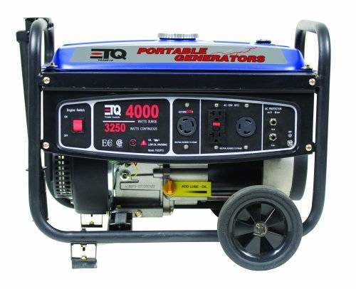 ETQ 7 HP 207cc OHV with protection from low oil shutdown Just pull start ETQ in clean, stable power ideal for sensitive electronic equipment supplies ETQ Power clean sinusoidal waveform with low distortion silent large ensures quiet operation Wheel kit includes a treat. One year warranty. The TG4000 is a diesel heavy. Has a degree of protection against surges of 4000 watts and 3250 watts of continuous power. Fuel tank capacity: 4 liter capacity 120V: 27.08 Amps, maximum current at 120 volts: 33.33 amps and a noise level in the 23 ': 75 db. อุปกรณ์ปั่นไฟรุ่นอื่นที่ขายดี: ETQ TG32P12CA, ETQ TG32P31, ETQ TG32P31CA, ETQ TG52T42, ETQ TG72K12, Generac 5622, Generac 5623, Generac 5625, Generac 5700, Generac 5723, Generac 5724, Generac 5734, Generac 5735, Generac 5737