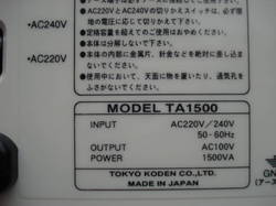 ขายหม้อแปลงไฟฟ้า KODEN แปลงไฟฟ้าจากไฟฟ้า 220 v เป็นไฟฟ้า 100-110 v ขนาด 1500 w