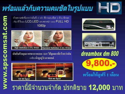พร้อมแล้วกับการรับชมรายการในระบบ HD ที่ความละเอียด 2 ล้าน พิกเซล กับเครื่อง DREAMBOX รุ่น dm 800 ที่ยังสามารถติดตั้ง HD ทั้งภายใน และภายนอกได้ด้วย ในราคาเปิดตัวเพียง 9,800 บาท เท่านั้น ปรกติเค้าขายกัน 11,000-12,000 บาท ด่วนมีจำนวนไม่มากนะครับ
