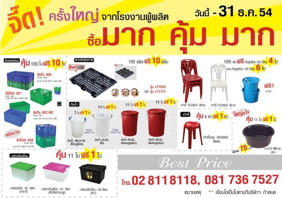 โปรโมชั่น แพลตตินั่ม จี๊ด ครั้งใหญ่ ซื้อมาก คุ้ม มาก พาเลท ลัง เก้าอี้ ฯลฯ ถึง 31ธ.ค.54