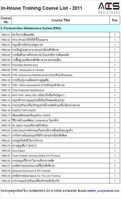 สนใจหลักสูตรอบรม ติดต่อคุณสุดาทิพย์ โทร.02-748-6761-2 ต่อ13 ACS REGISTRARS LTD Tel: 0-2748-6761-2 ต่อ 13 Mobile : 081-8906229 E-mail: [email protected] , [email protected] สอบถามเพิ่มเติมติดต่อ:คุณสุดาทิพย์ Tel: 0-2748-6761-2 ต่อ 13 Mobile 081-8906229