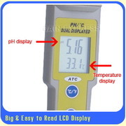 - หน้าจอแสดงค่าการวัดทั้ง pH และอุณหภูมิ