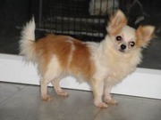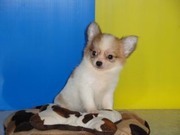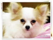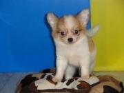 ลูกสุนัข " ชิวาว่า ขนยาว " ชุดใหม่ เพศผู้ สี ขาว + น้ำตาล ราคา 7,900 บาท