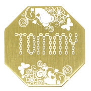 2. Stainless Steel เป็นสีของสแตนเลส คือเงิน Metallic มีน้ำหนักหนักกว่าทองเหลืองและอลูมิเนียม แต่ความแข็งแรงสูงกว่า เป็น ถือได้ว่าเป็น Classical Pet Tag