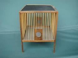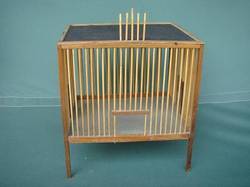 โครงเป็นไม้สัก ซี่เปนไม้ไผ่ เพดานกรงเป็นผ้า (กันหัวนกกระแทก)