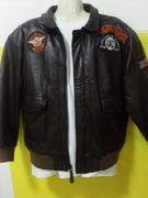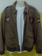 แจ๊คเก็ตหนังปักอาร์ม ทรงนักบิน เอวจั๊ม แขนจั๊ม มีแบบหนังมันสีน้ำตาลเข้ม และหนังชามัวร์ สีน้ำตาลอ่อน ไซค์ M-L ราคา 550 บ.