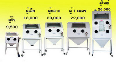 คุณภาพดี ขายถูกกว่าท้องตลาดหลายเท่าทุกรุ่นตัวตู้ทำด้วยเหล็กหนา พ่นสีอบอีพ้อกซี่ มีขาตั้งล้อเลื่อน ติดตั้งพร้อมปืนพ่นทราย , ถุงมือยาง , ไฟนีออน , เกจ์ยควบคุมลมดักไอน้ำ , ถังดักฝุ่น ของใหม่ สอนวิธีพ่นทรายให้ฟรี ไม่ต้องไปเรียนให้เสียเงิน 10 นาทีก็เป็นแล้ว ไม่ได้ยากอย่างที่คุณคิด