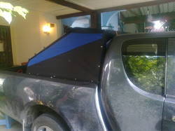ขายหลังคารถกระบะสภาพใหม่ ซื้อมา1300ใช้ตอนกลับบ้านสงกรานต์ครั้งเดียว ขาย750 สีเทาคาดฟ้า