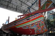 เรือกอและ ขนาดยาว 9.5 เมตร กว้าง 1.7 เมตร ลึก 0.8 เมตร 2 ตัวแทนจากจังหวัดนราธิวาสเพื่อนำมาจัดแสดงในงาน OTOP Festival