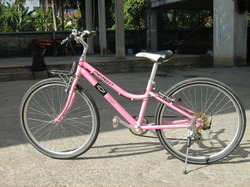 ขายจักรยานทัวร์ริ่ง Chevrolet ตัวถังอลูมิเนียม วงล้อ 26 นี้ว สีชมพู เกียร์ 6 สปีด มีตะแกรงหน้า น้ำหนักเบา สภาพสวย ปั่นดี ราคา 5900 ติดต่อได้ตลอด 085-442 6867/มนตรี ท่านสามารถเข้าดูรถคันอื่น ๆ เพิ่มเติมได้ตามเวปด้านล่างครับ http://montrihomebike.tarad.com