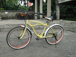 ขายจักรยาน ครุยเซอร์ ทรงโค้งสวย ตัวถังสีครีม บังโคลนขาว(ทำสีใหม่) วงล้อ 26 นี้ว ยางนอกแก้มขาว น้ำหนักไม่มาก ปั่นลื่น ราคา 4600 ติดต่อ 085-442 6867 http://montrihomebike.tarad.com