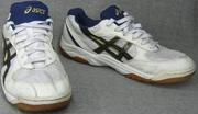 Asics พื้นยางดิบขาวน้ำเงินคาดแถบน้ำเงินขลิบทองเบอร์ 42.5