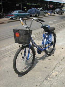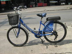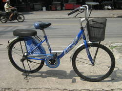 จักรยานแม่บ้าน la สภาพดี ตัวถังสีน้ำเงิน วงล้อ 24 นี้ว มีตะกร้าหน้า ที่ซ้อนท้าย เป็นเบาะนุ่ม มีที่พักเท้า ขาย 1700 ติดต่อ 085-442 6867-มนตรี