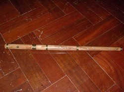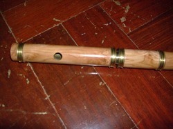 ขลุ่ยผิวทำจากไม้โคคัส โชว์ลายไม้สวยงาม ให้สำเนียงเสียงนุ่มแบบเซลติก ไฮแลนด์ แองโกล แซกซอน ข้อต่อไม้ค็อก หุ้มทองเหลือง ส่วนหัวข้อต่อเงินปรับแต่งเสียง ปรับมุมการเป่าได้ ความยาว 26 นิ้วคีย์D