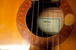 กีต้าร์คลาสสิค YAMAHA C-40 ราคา 1,500 บาท มีรอยสีแลกเกอร์แตกหลุด แต่ไม่ใช่เนื้อไม้ ส่วนขอบสีดำหลุด เนื่องจากขอบถูไถ ไปมา 080-4287123