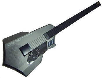The Casio DG-20 is a stringed guitar, but every time you play those strings, corresponding MIDI data is sent to the onboard computer, which plays the sounds of whichever instrument you've selected! Naturally the sounds are not mind-blowingly awesome, but some are actually pretty usable. You can either play the DG-20 as a standalone guitar via its built-in speakers, or for better quality sound you can plug it into your stereo.