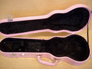 กระเป๋า UKULELE -ด้านนอกหนังสีชมพู -ด้านในกำมะหยี่สีดำ -หูหิ้ว -สายสะพาย