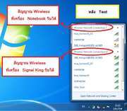 จาก รูปจะเห็นได้ว่าเมื่อใช้ตัวรับสัญญาณของ Signal King สามารถจับสัญญาณของ 3BB_Hotspot@201-A1N05ได้ถึง 5ขีดเต็ม รวมทั้งสามารถรับสัญญาณที่อยู่ใกล้เคียงได้อีกหลายตัว ทั้งที่ภาครับสัญญาณ wifi ของ Notebook จับสัญญาณได้แค่ 3 ตัวเท่านั้น **** จากรุปจะเห็นว่า Notebook รับสัญญาณ wifi ได้ไม่ดีเท่ากับการใช้ตัวรับ Signal King แต่ควรตรวจสอบด้วยว่า Notebook สามารถรับสัญญาณ wifi ที่ท่านต้องการจะรับได้หรือไม่ เช่น สัญญาณที่ผมต้องการรับคือ 3BB_Hotspot@201-A1N05ซึ่งเป็นสัญญาณที่ Notebook รับได้อยู่แล้ว ทำให้มั่นใจได้ว่าถ้า Notebook จับสัญญาณได้ แสดงว่า Signal King ก้จะจับสัญญาณได้และดีกว่าแน่นอน เพราะตัวรับ Signal King เป็นตัวรับสัญญาณ wifi ให้มีคุณภาพและดีขึ้น โดยในการวางตัวรับ Signal King ในพื้นที่โล่งจะยิ่งช่วยเพิ่มประสิทธิภาพในการรับสัญญาณ wifi ให้ดียิ่งขึ้น รวมทั้งระยะห่างจากจุดปล่อยสัญญาณของเร้าเตอร์ที่ต้องการรับห่างกันมากแค่ นั้นก็มีผลกับคุณภาพของสัญญาณที่ได้รับเช่นกัน **** Signal King USB wifi High Power อุปกรณตัวรับสัญญาณ wifi มี 5 รุ่น คือ - Signal King USB Wifi High Power 2000mW (chip RT3070) รุ่น 300000N มาพร้อมกับเสาแบบทิศทางขนาด 16 dBi (สามารถเปลี่ยนเสาได้) ในชุดจะมี ตัวรับสัญญาณ , เสา , สาย USB , แผ่นไดว์เวอร์ ราคา 890 บาท ( ถ้าต้องการให้ส่ง EMS + 60 บาท )