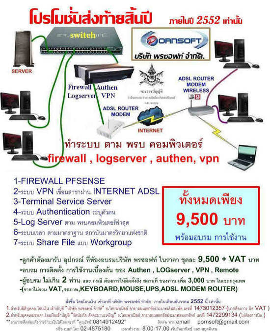 โปรโมชั่น พิเศษ ทำระบบ ตาม พรบ คอมพิวเตอร์ logserver , firewall , vpn , share file