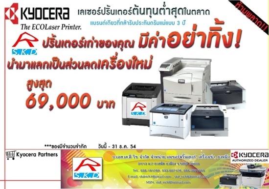 โปรโมชั่นพิเศษ ธ.ค 2554. FS-1120D เหลือ 4,000 บาท โทร. 086-3961066 www.skdrich.co.th FS-1120DN 7,000บาท เงื่อนไขพิเศษ ติดตามได้ที่ website บริษัท หมึกKyocera ราคาถูก เมื่อซื้อพร้อมเครื่องสอบถามด่วน 086-3961066 www.skdrich.co.th โทรหาเราสิครับ TK-164ราคาถูก , TK-174ราคาถูก , TK-354 ราคาถูก สอบถามเงื่อนไขและโปรโมชั่นด่วน 1 ปี มีครั้งเดียวกับโปรโมชั่นแบบนี้ อย่าพลาด ของดีราคาถูก