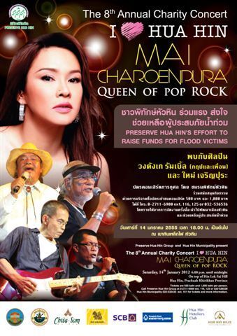 งานคอนเสิร์ตเพื่อการกุศลระดมทุนช่วยน้ำท่วมบนยอดเขาหินเหล็กไฟหัวหิน งานนี้มีใหม่เจริญปุระมาด้วย พร้อมกับวงดนตรีท้องถิ่นมากมาย ตั๋วราคา 500 (ชมอย่างเดียว) และ 1,000 บาท ( ชม-กิน-ดื่ม)