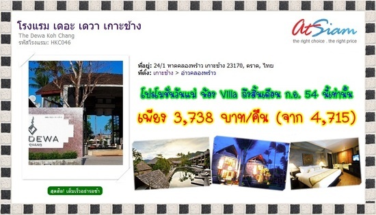 โปรโมชั่นเทศกาลวันแม่ ที่ โรงแรม เดอะ เดวา เกาะช้าง ห้อง Villa เพียง 3,738 บาท/คืน (จาก 4,715 บาท)