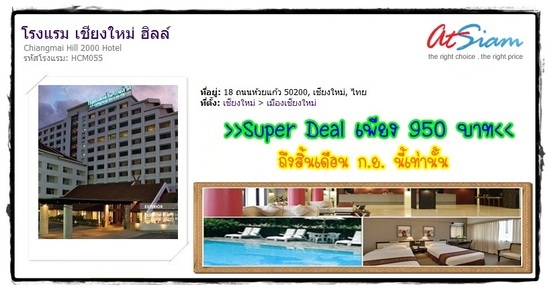 โปรโมชั่น Super Deal เพียง 950 บาท ที่ โรงแรม เชียงใหม่ ฮิลล์ สอบถามเพิ่มเติมโทร : 02-9334142