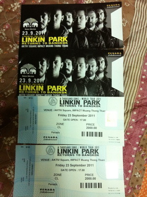 ขายบัตรคอนเสิร์ต Linkin Park บัตรราคา 2000 บาท Zone C มี 2 ใบ ซื้อสองใบลดให้ต่อได้ ^^