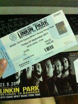 มีบัตรคอนเสริต linkinpark ขาย 900 บทาจาก1000บาท