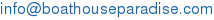 309 หมู่ 2 ซ.วังวน 5 ต.สองพี่น้อง อ.แก่งกระจาน จ.เพชรบุรี 76170 081-810-8366 , 081-908-5665 แฟ๊กซ์ 02-759-1014 www.boathouseparadise.com [email protected]