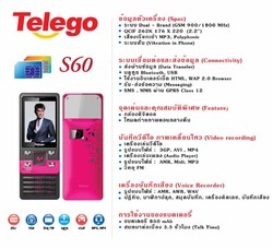ขายโทรศัพท์มือถือ TELEGO S60 (เจ้าของเดียวกับโทรศัพท์มือถือ ฟิลิปส์) รุ่นสไล์ด สีดำ-ชมพู ราคาพิเศษ 1,500 บาทยังไม่แกะกล่อง มีตัวเดียว สนใจติดต่อ 084 643 7222 หรือ www.mobilemag.in.th/shop