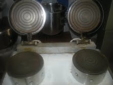 เตาทองม้วน 2 หัว (ทำได้ทั้งทองม้วนสดและทองม้วนกรอก) ใช้ระบบไฟฟ้า