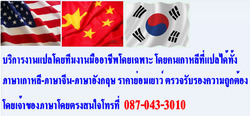 บริการรับแปลภาษา เกาหลี จีน อังกฤษ โดยเจ้าของภาษาโดยตรง รับรองความถูกต้อง ราคาไม่แพงโทรมาได้เลยที่ 087-043-3010