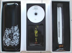ชุดเครื่องหนีบผม สามารถใช้ได้ทั้งหนีบให้ผมตรง หรือจะทำการม้วนให้ผมเป็นลอนสวนอยู่ทรงก็ได้ เป็นของ gdh จากอิตาลี รุ่น Limited Edition เหมาะกับการซื้อเป็นของขวัญหรือจะใช้เอง พร้อมกล่องลายผ้กำมะหยี่ ด้านในประกอบด้วย 1. เครื่องรีด 2. กระเป๋า 3. ดีวีดีการใช้งาน
