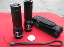 สวัสดี ครับ ผม กบ ครับ ผมขอเสนอขายไฟฉายหลอดซีนอนกำลังสูง 30 W ยี่ห้อ UltaFire และ SHULE ใช้ถ่าน AAA 3 ก้อน กำลังไฟส่องทางไกลได้ 20 เมตร สบาย ๆ ครับ ในที่มืด สามารถปรับเลนส์ไฟฉาย ให้รวมแสงหรือกระจายแสงได้ครับ ในการใช้งานได้สามแบบครับ กระพริบรั่ว ๆ ให้ไฟนวนตา หรือให้สว่างจร่า ลักษณะเด่น ใช้งานง่าย ขนาดกระทัดรัดมาก ห้อยคอหรือพกติดตัวสะดวก น้ำหนักเบา ราคาย่อมเยาว์ เหมาะสำหรับ การใช้สังเกตุการณ์ เดินเขา ชายทะเล ไปท่องเที่ยว ติดรถยนต์ไว้ไม่เสียหายครับ พกติดตัวใช้งานกลางแจ้งทั่วไปน้ำหนักเบาพกพาสะดวก ขนาดสูง 3 ซม. X กว้าง 3 ซม. X ยาว 10 ซม.