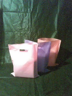 ถุงผ้าสปันบอนด์สำเร็จรูปคละสีเจาะขนาด10"x12"บรรจุ 15 ใบ/แพ็ค@ 35 บาท