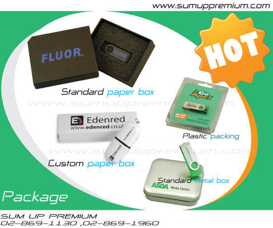 - แฟลชไดร์ฟพรีเมี่ยม มากกว่า 50 แบบ ระยะเวลาการผลิต 7 – 20 วัน สั่งผลิตขั้นต่ำ 100 ชิ้น ฟรีสกรีนโลโก้
