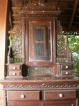 โต๊ะเครื่องแป้งไม้สักแกะสลัก อ่อนช้อยงดงาม มีตู้ด้านล่างไว้ใส่ของ มีลิ้นชัก 2 อันและมีลิ้นชักเล็ก ๆ อีกข้างละ 2 อัน ราคา 10,000 บาท นับวันยิ่งมีราคาสูงมากขึ้น ของเก่า
