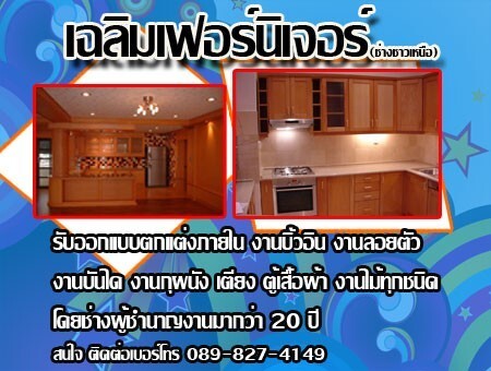 รับออกแบบ ตกแต่งภายใน งานบิ้วอิน งานลอยตัว งานบันได กุผนัง เตียง ตู้เสื้อผ้า งานไม้ทุกชนิด โดยช่างผู้ชำนาญงานมากว่า 20 ปี สนใจติดต่อคุณเฉลิม(ช่างชาวเหนือ) เบอร์โทร 0898274149