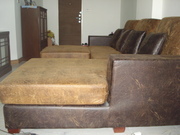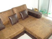 โซฟาเบด 3 ที่นั่ง ทั้งชุดประกอบด้วย (1) โซฟาแบบ 3 ที่นั่ง: เบาะนั่งขนาดใหญ่และลึก นั่งได้นุ่มสบาย และพนักพิงที่รองรับแผ่นหลังได้เป็นอย่างดี ขนาดความกว้าง: 290 ซม. ความลึกต่ำสุด: 100 ซม. ความลึกสูงสุด: 180 ซม. (2) สตูลวางเท้า 1 ตัว (3) หมอนใหญ่ 3 ใบ (4) หมอนเล็ก 4 ใบ โซฟาผ้าหนังช้าง สีทูโทน น้ำตาลเข้มและอ่อน สามารถถอดซักได้ เนื้อผ้าไม่อมฝุ่นทำความสะอาดง่าย สนใจติดต่อ คุณอู๊ด 081-650-9590