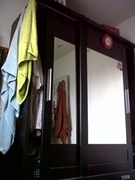 ขายด่วน! ตู้เสื้อผ้าบานสไลด์ กระจกเต็มตัว มีเก๊ะข้างล่าง2ช่อง สีน้ำตาลเข้ม ซื้อมา7,500 บาท ขายต่อราคา 2,200 บาท โทร083-699-6044