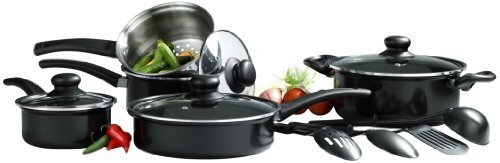 13 pieces of aluminum pans - Coal consists of pot 1 / 4 (6 inches) 1-1/2-quart cover (7 inch) pot with lid, 18 / 0 stainless steel with steam to enter the Interior Poland and outside mirror polished handle 1-1/2-quart bread alone, 3-1/2-quart (9-1/2-inch) dutchoven covered maintenance free deck 9-1/2-inch pan handle Spare nylon handle PP 4 tools: split Turner, ladle, slotted spoon, solid spoon. 13 pieces of cookware - high quality coal has non-stick pan without any problems for cooking and cleaning. Aluminum is lightweight and is an excellent conductor of heat, resulting in efficient use of energy. Each tub has bakelite handles that stay fresh longer in the fire and provides a comfortable grip for easy handling. Spatula, spoon and ladle are ideal for the use of anti-stick and dishwasher.