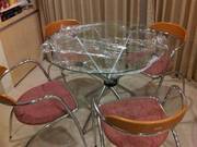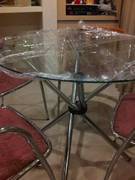 ต้องการขายโต๊ะชุดรับประทานอาหาร ท๊อปเป็นกระจกเทมเปอร์ ขนาดเส้นผ่าศูนย์กลาง 1 เมตร ความหนา 8 ม.ม. สภาพดี พร้อมเก้าอี้มีพนักพิง เบาะลายสีแดงส้ม 4 ตัว ขาย 6000 ค่ะ ทั้งชุดค่ะ