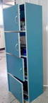 ปิดกิจการ ขายล็อคเกอร์ไม้สีฟ้า 4 ชั้น 790 บาท มีกุญแจล็อคทุกชั้นขายถูกมากก่อนสิ้นเดือนธค